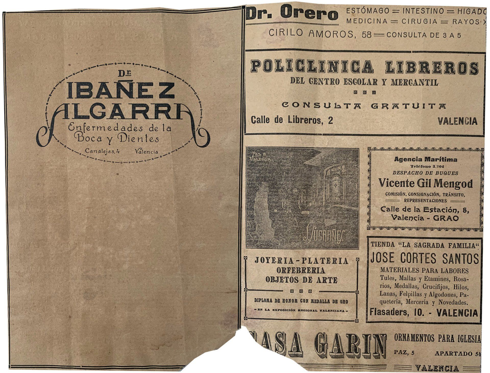 Publicidad de la clínica Ibáñez-Algarra de principios del siglo XX